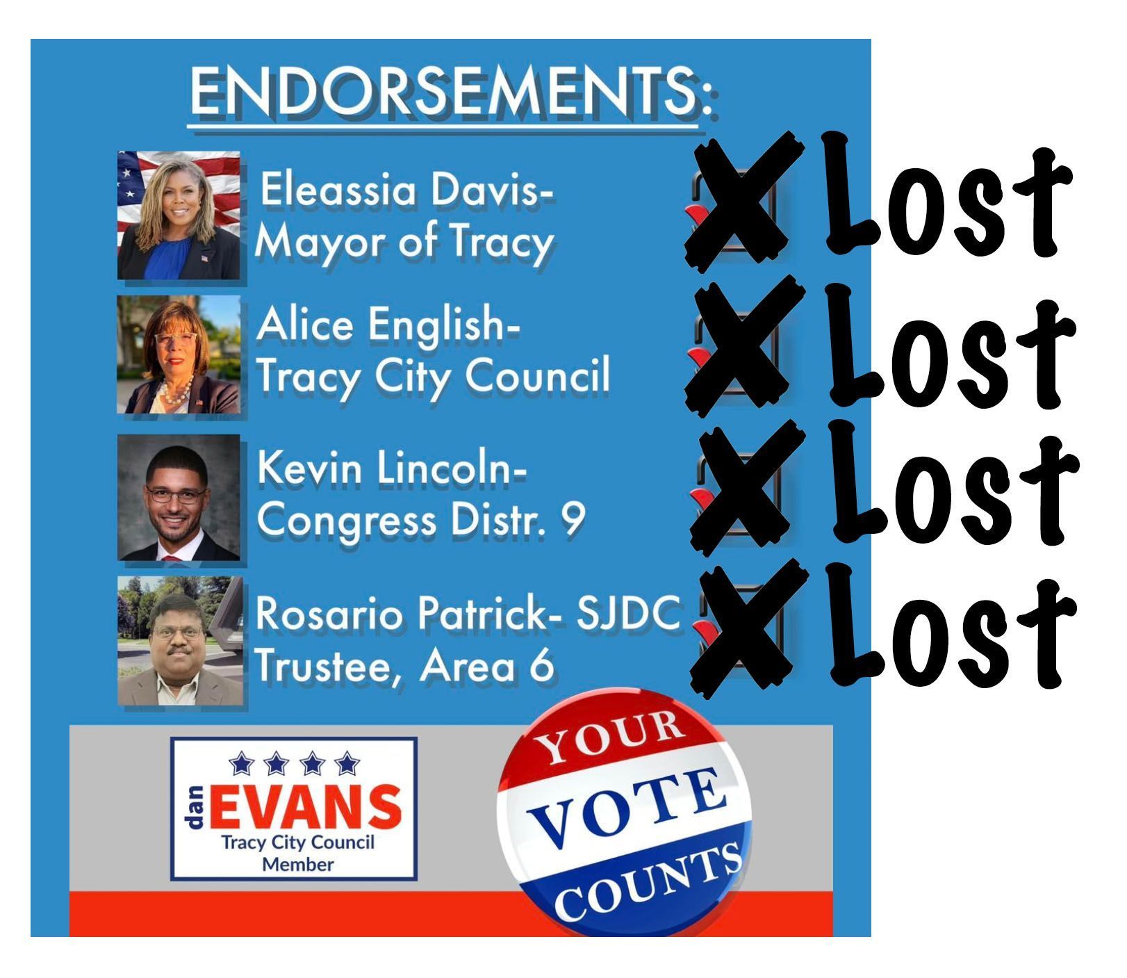 Over 87% of the electorate voted against Mateo Bedolla retaining his city council seat, and every one of Dan Evans’ endorsed candidates lost – including Eleassia Davis and Alice English.