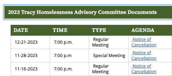 Tracy’s homeless can only hope things will get better in 2024, as Mayor Pro Tem Eleassia Davis and Councilman Mateo Bedolla cancelled the Tracy Homelessness Advisory Committee’s remaining meetings for this year. The last meeting for the Committee was on October 19