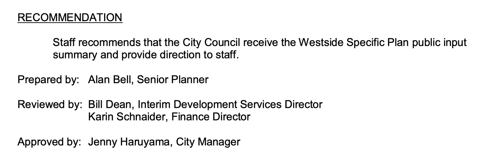 The implications of Tuesday's Council Meeting on the Westside Specific Plan are significant.