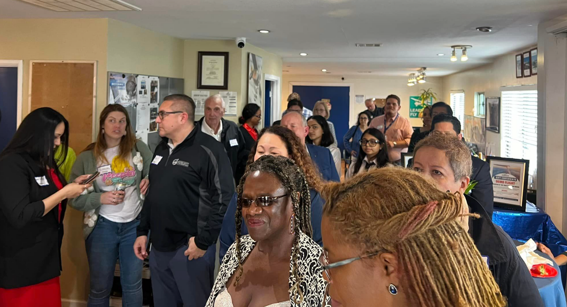 While Davis stayed tight-lipped on the troubling accusations at Tracy’s homeless shelter, she had plenty to say about the Skyview Aviation mixer she attended.
