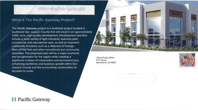 Since Rickman’s cool response to the project, Sandhu went and hired I Street Public Affairs out of Sacramento and Annie Hoagland of JB Comm, Inc. As the Draft Environmental Impact Report was being completed, the project was given the slick makeover and thus was born the “Pacific Gateway” project. Here is a flier from their community meeting this past June.