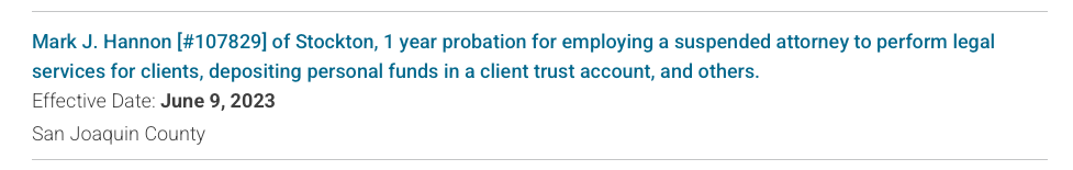 A Stockton attorney, for instance, was placed on probation for a year for using an attorney with a suspended license to perform legal services for clients.